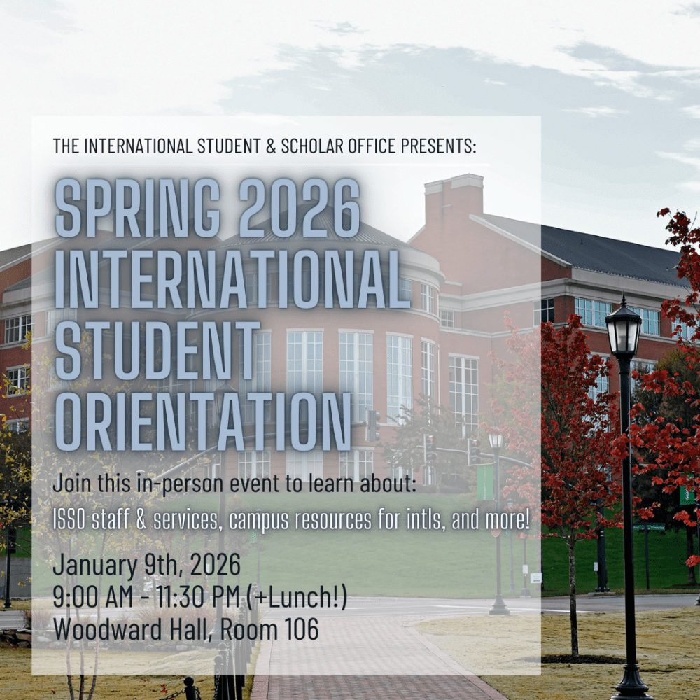 - January 9th, 2026: In-Person International Student Welcome Event, Woodward Hall Room 106, 9 AM to 1 PM (lunch at SoVi included!) .